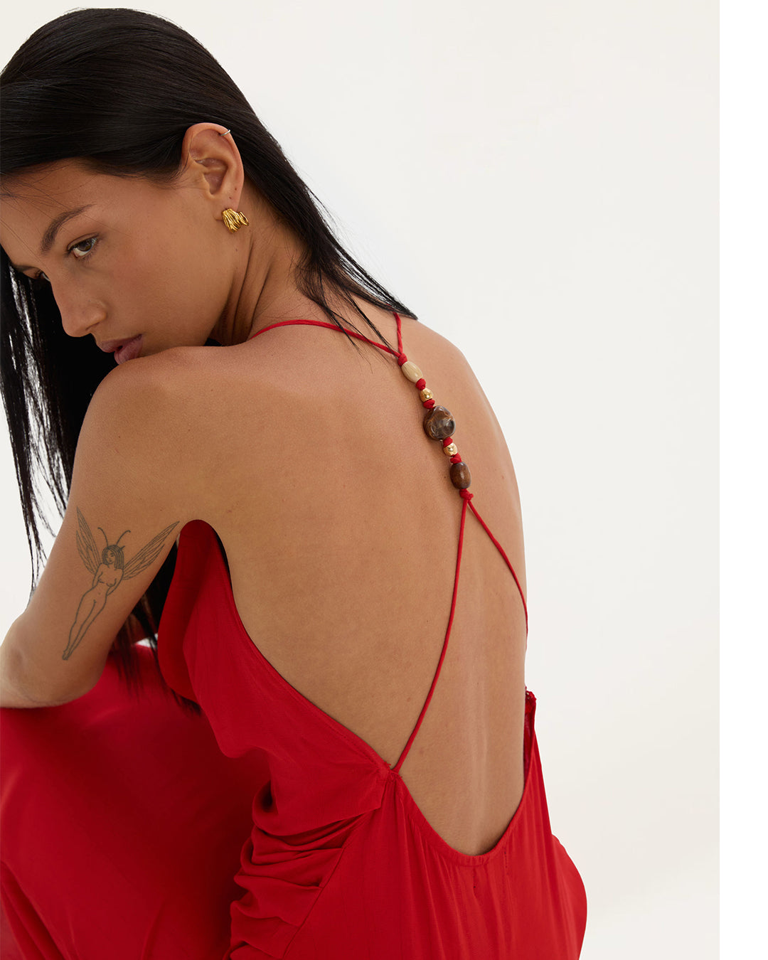 - Open back with strap detail